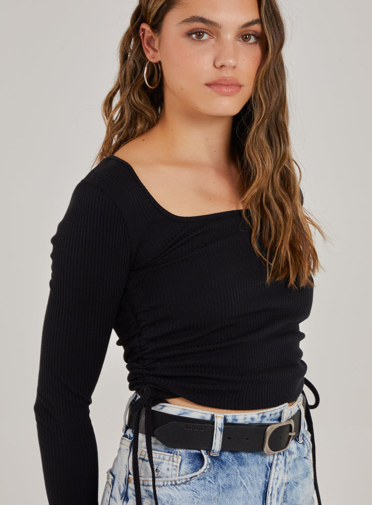 This Gathered Long Sleeve Top is the perfect addition to your new season wardrobe. Pair with leather trousers and chunky boots for an off duty look.