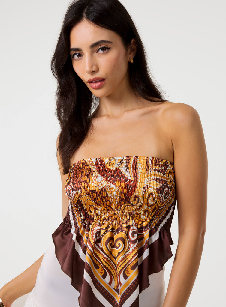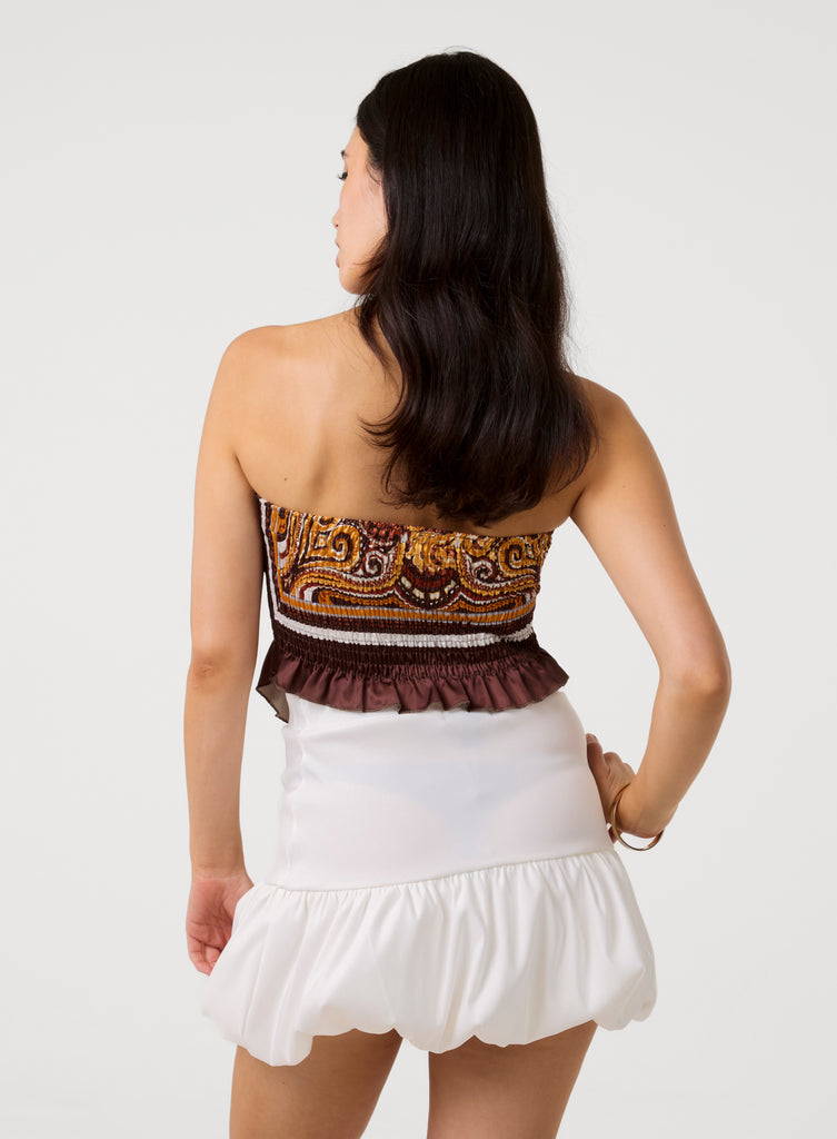 This summer bandana tops are a must-have for your wardrobe. Style it with a broderie white mini skirt and woven open sandals and accessorise it with gold hoops for a cute summer girl 'fit.