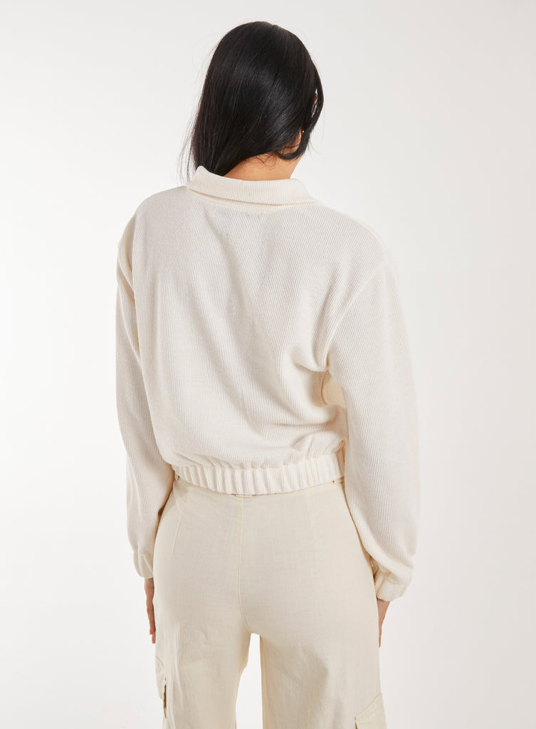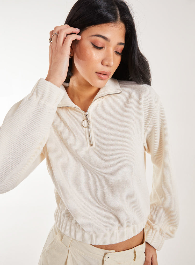 Add a sporty vibe to your look with this sweater. Featuring a zip neck detailing. Team with matching colour cargos and trainers for a look we're lovin'.