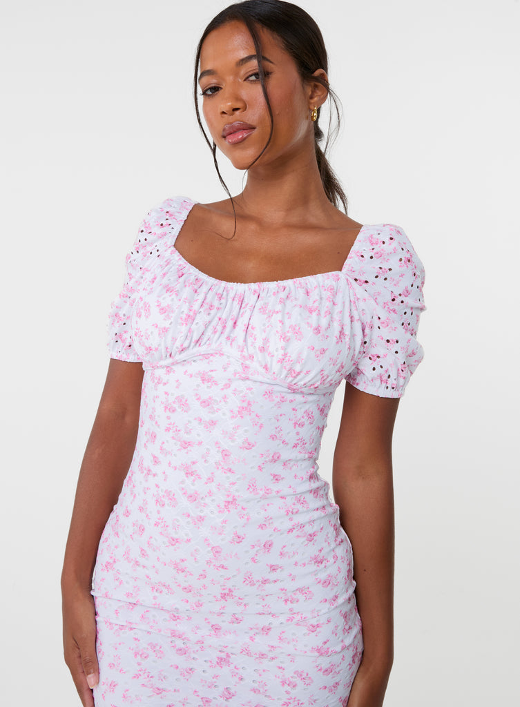 It's that time of the year again: floral dresses season. Feel cute and sexy with this Floral Broderie Puff Sleeve Dress.