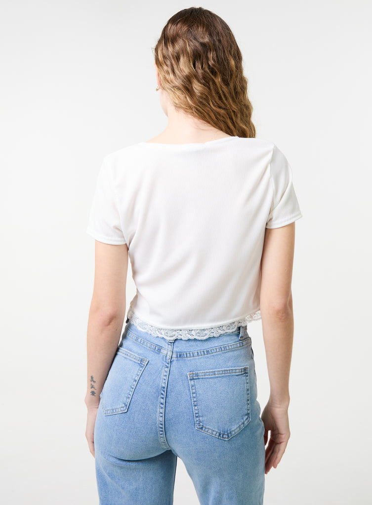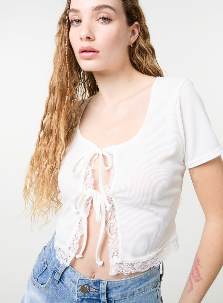 Spring is coming and it's time to update your wardrobe. We have the perfect top for you girl, this Ribbed Lace Tie Front Top by Pink Vanilla will be your new everyday pick for when you have nothing to wear.