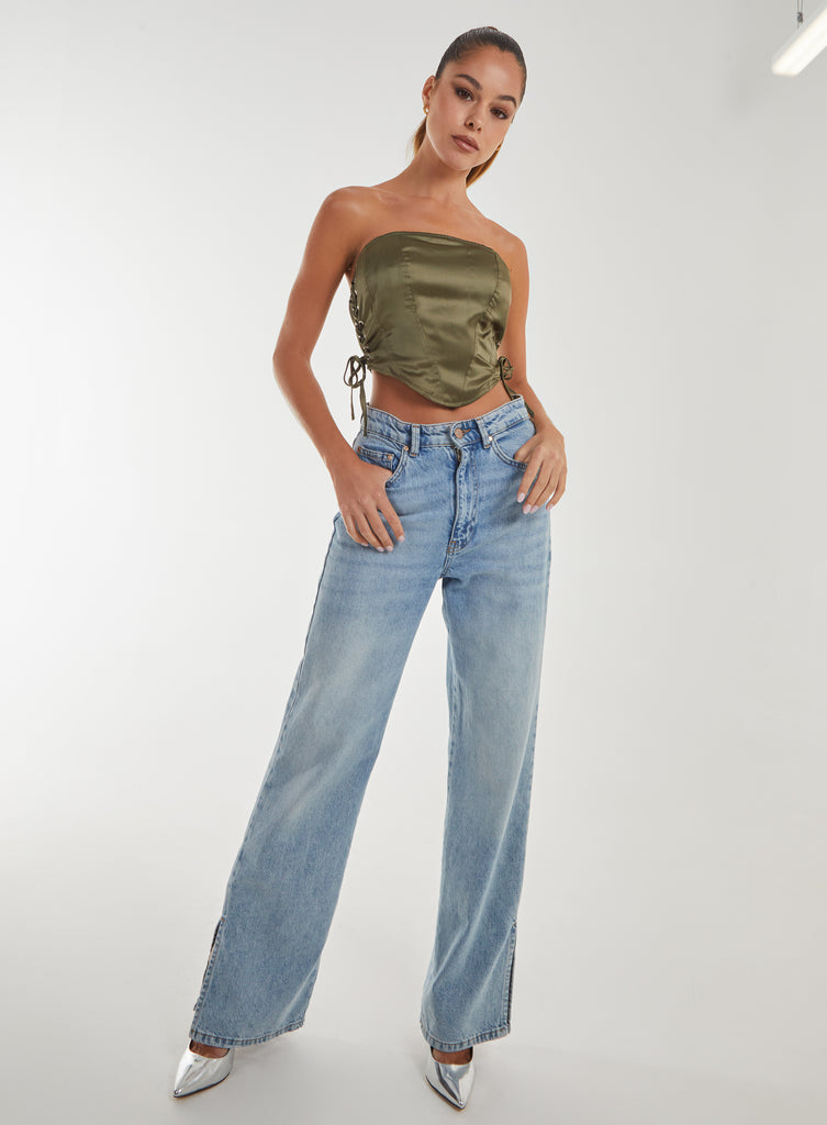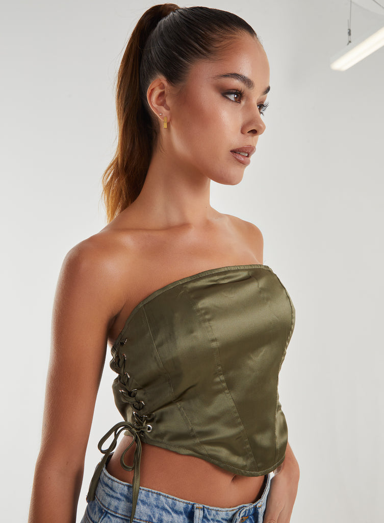 At Pink Vanilla we all agree that a corset top should be a must-have in everyone's wardrobe and that's why we came up with this lovely Lace Up Corset Top. Style it with cargos for a trendy look.