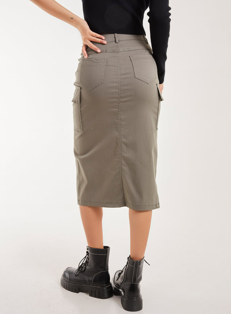 Utility Cargo Midi Slit Skirt