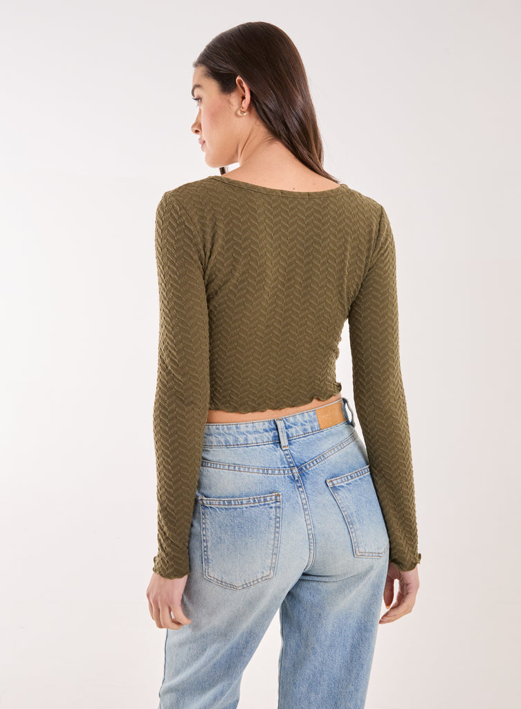 A long sleeve top is always a must-have for your wardrobe. Featuring a cool zig-zag fabric, style it with denim jeans and white sneakers or layer it under a waistcoat for an insta-worthy look.