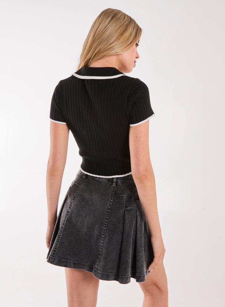 Knit Collared Contrast Top