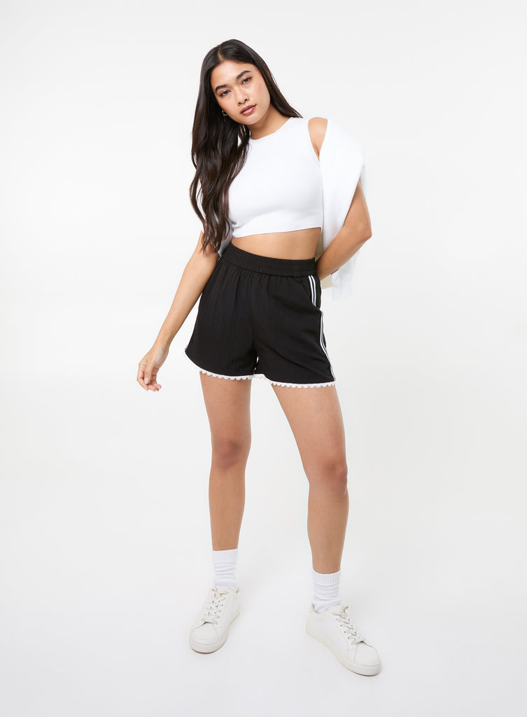 Take chilling at home to another level with these cute Lace Trim Stripe Shorts.