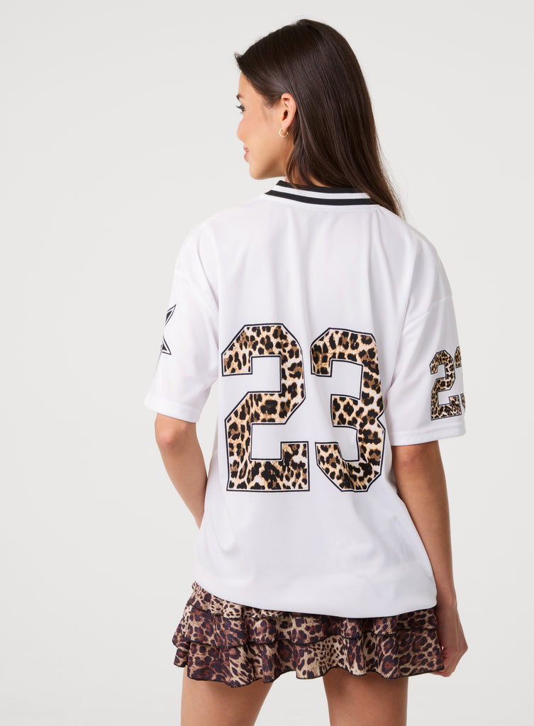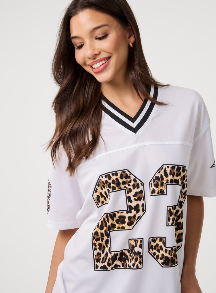 Football-core meets girly vibes. Inspired by old school jersey tops, this T-shirt features an oversized fit for endless styling options.