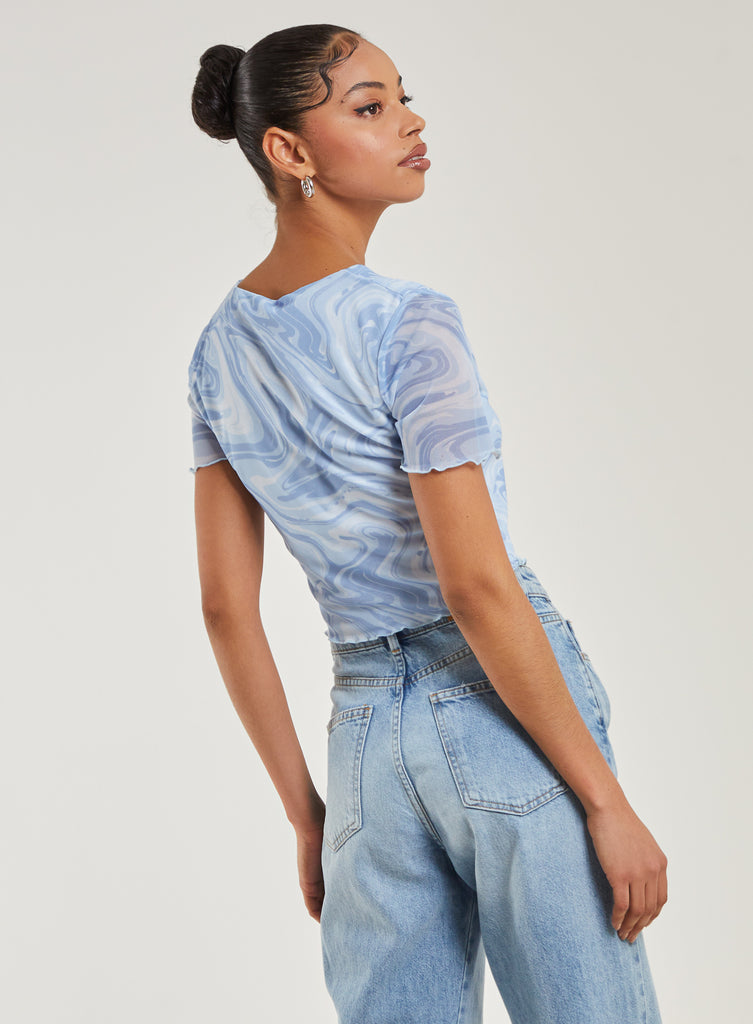 Get summer ready with this Swirl Print Capped Sleeve Mesh Top. Add this to any 'fit for an instant, effortless outfit that is sure to make you standout.