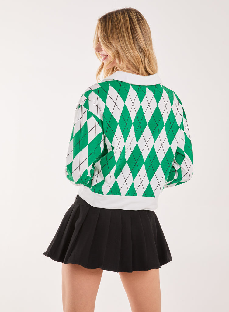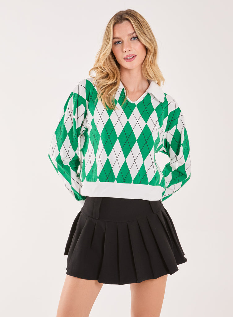 Just the perfect school girl fit but make it cool. Make a statement in this argyle pattern top.