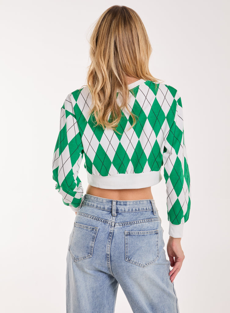 Just the perfect school girl fit but make it cool. Make a statement in this argyle pattern top.