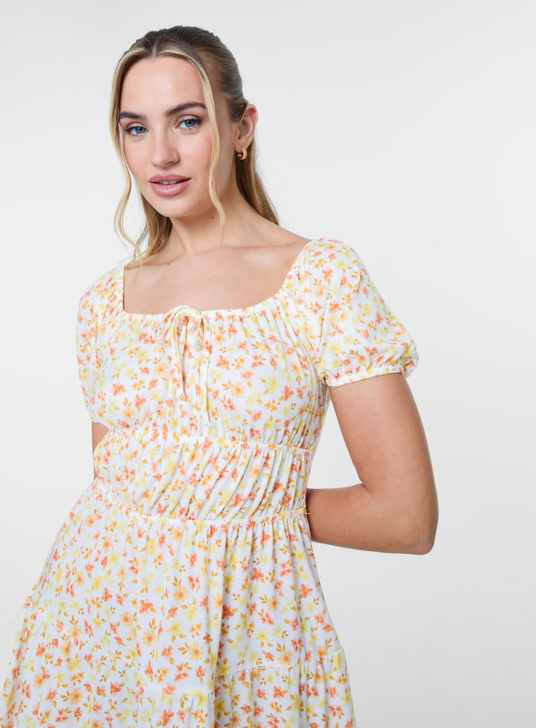 Make a statement this summer with this floral mini dress. It's perfect styled with cowboy boots.