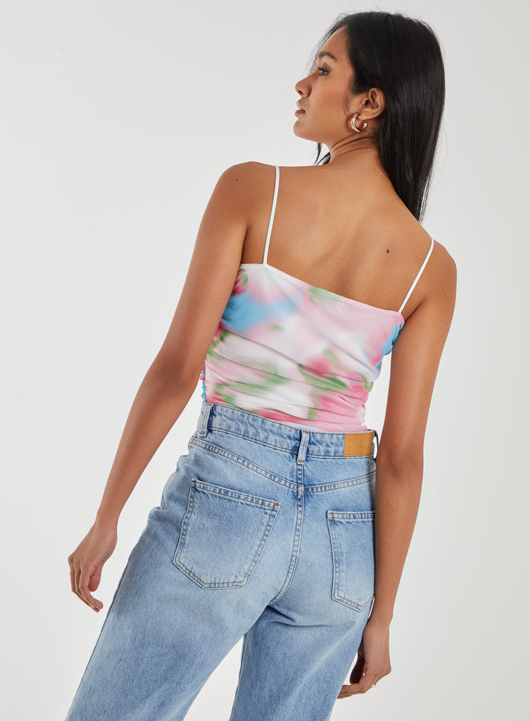 Look no further for the perfect bodysuit of the season! All eyes will be on you with this Graphic Smudge Print Strappy Bodysuit.