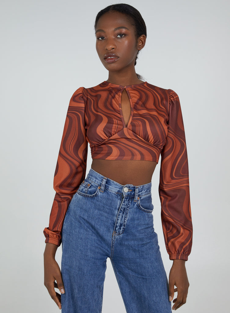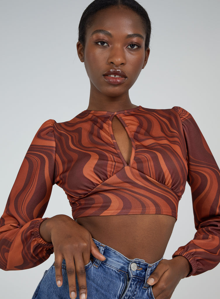 Show some skin this season! This open back marble crop top is the perfect style for the weekend, grab yours now!