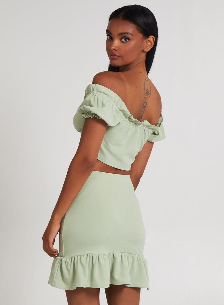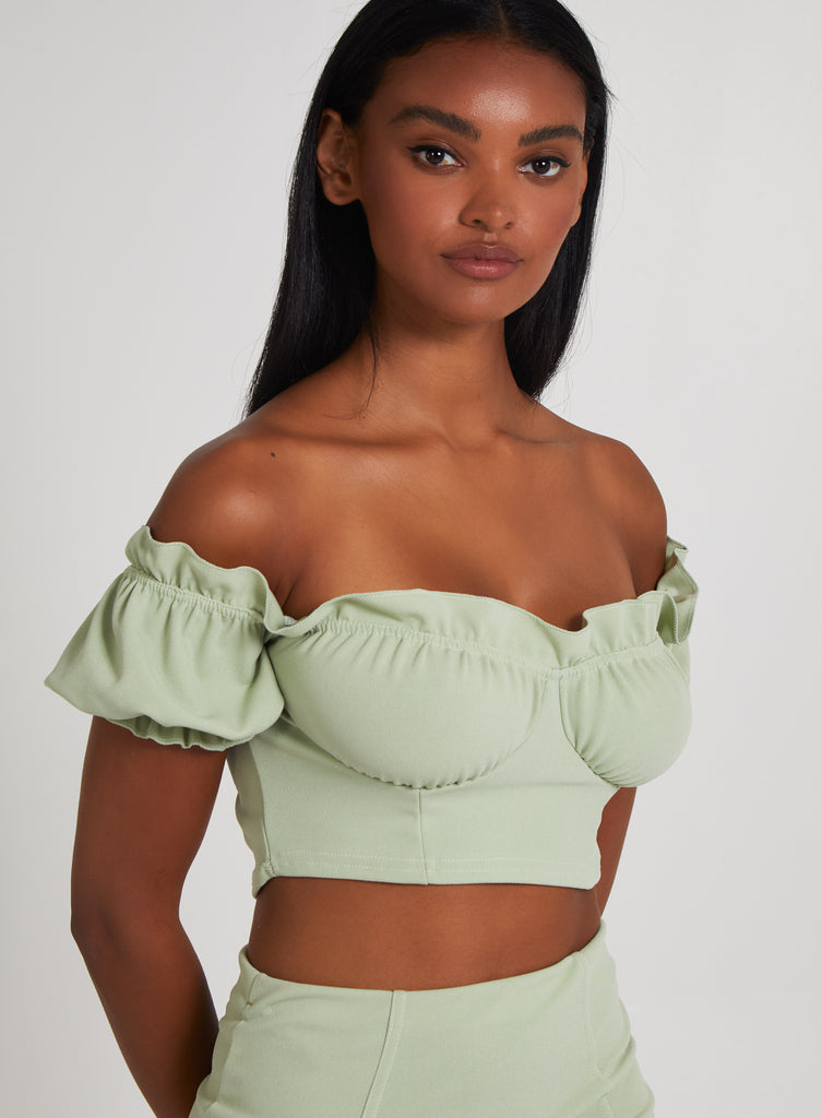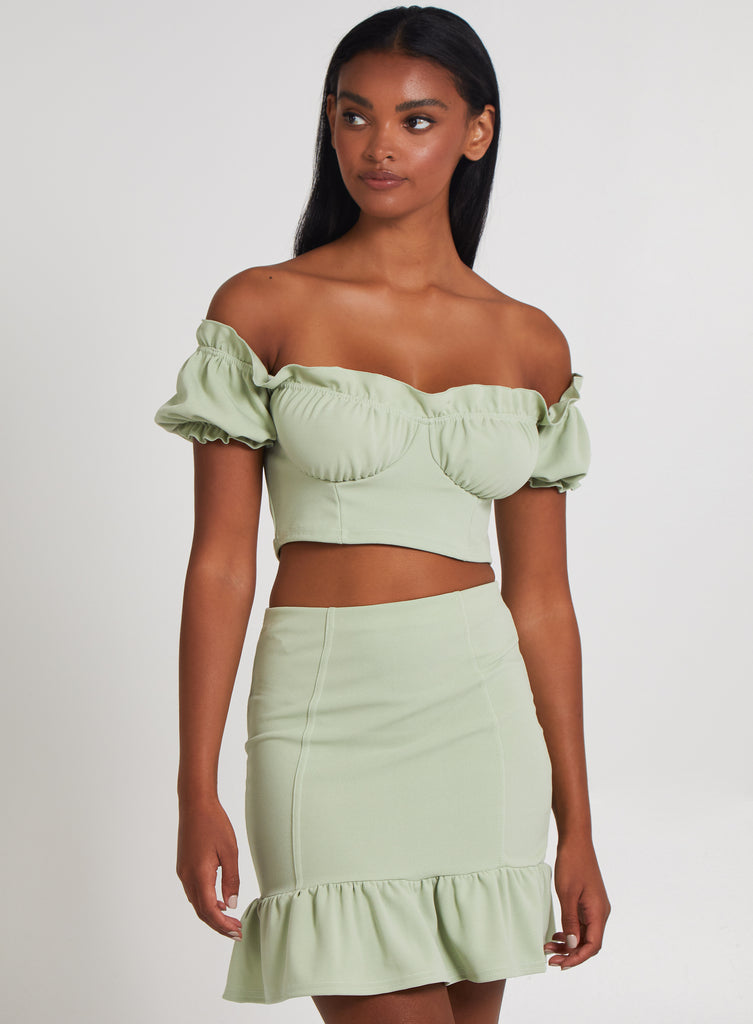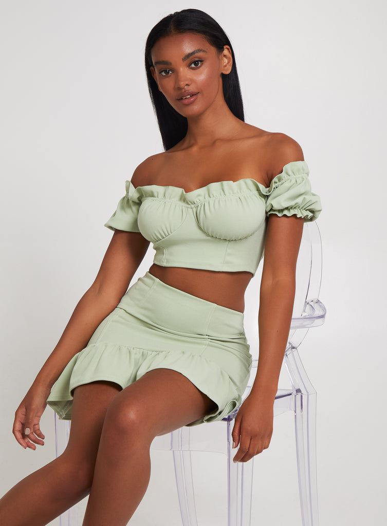 Step into summer by wearing this Frill Detail Milkmaid Top by Pink Vanilla.