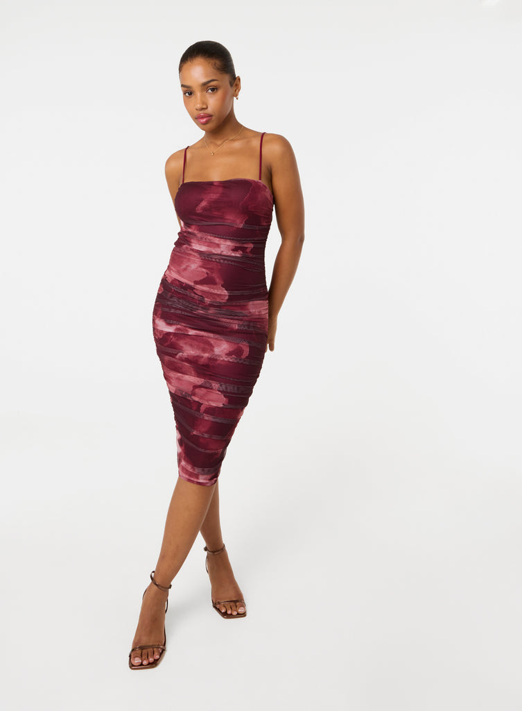 At Pink Vanilla, we can't get enough of this lovely smoke print. This dress features straps, making it the must-have midi dress of the season!