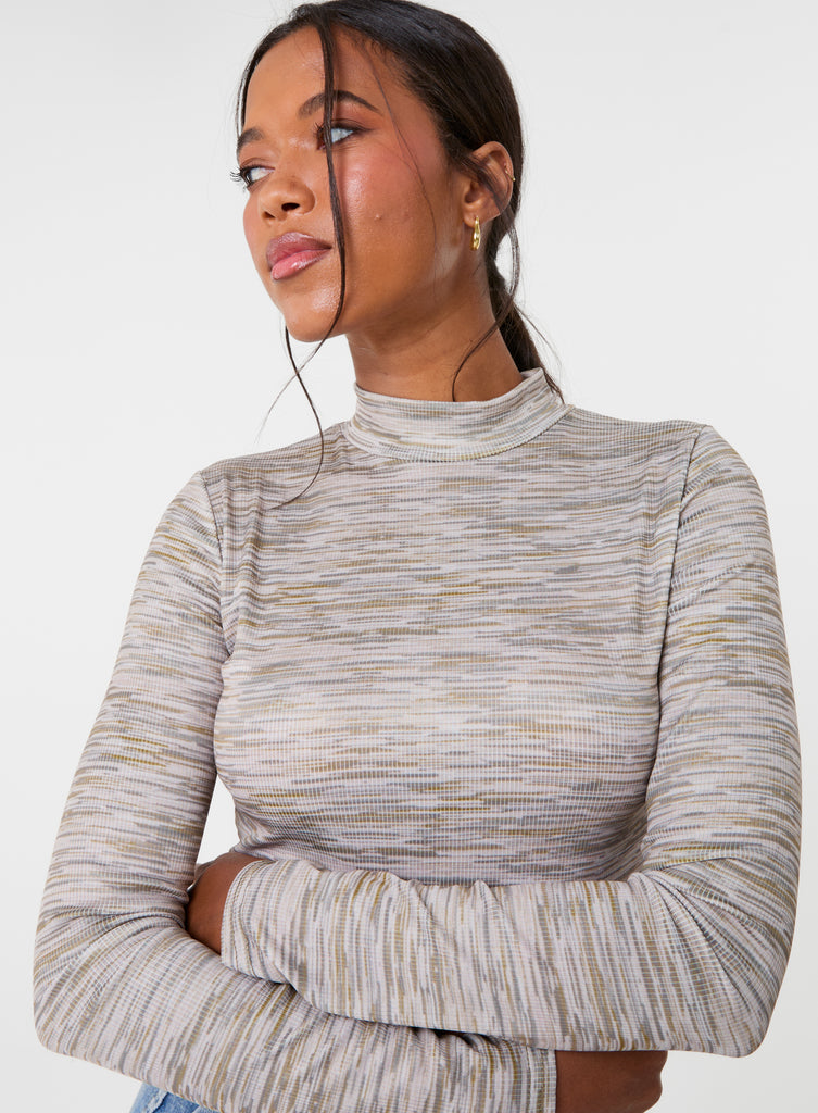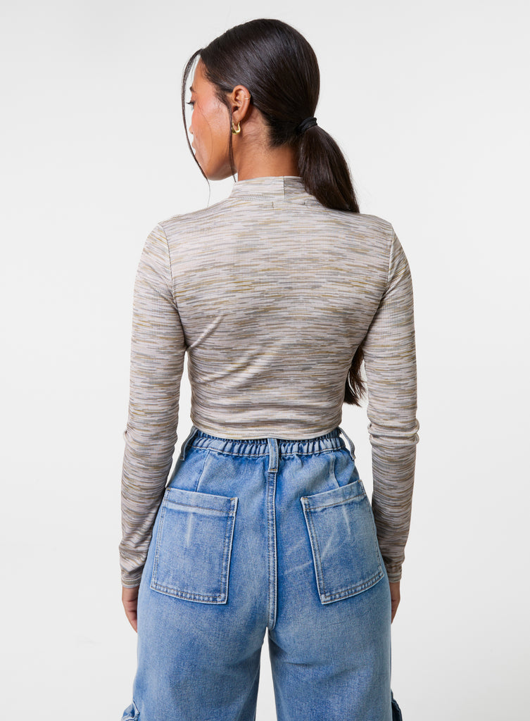 Space Dye High Neck Long Sleeves Crop Top