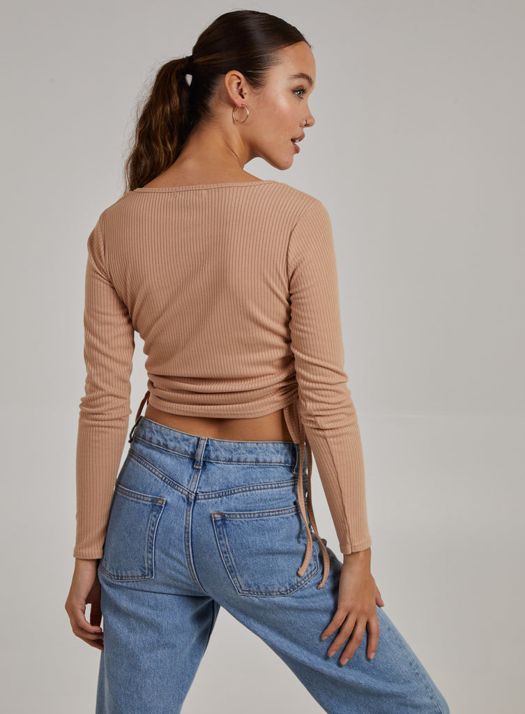 Gathered Ribbed Long Sleeve Top