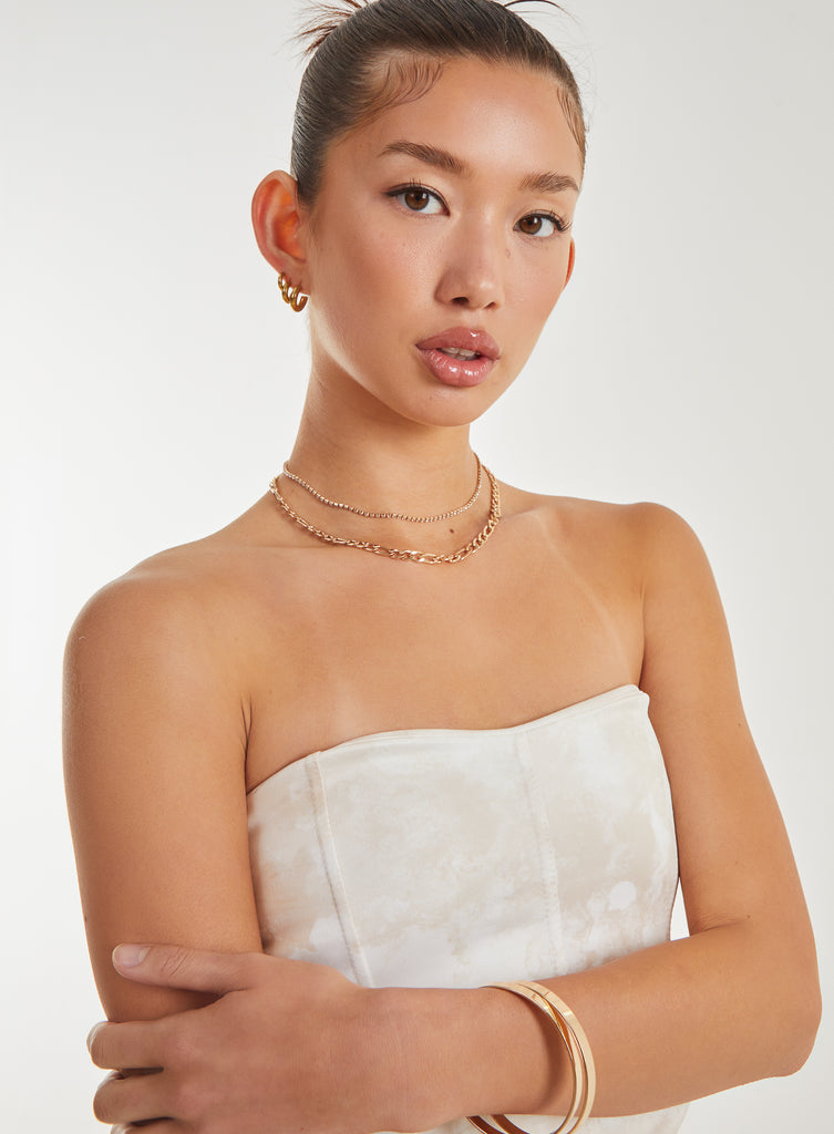 Pink Vanilla's must-have Corset Top landed with a new fun pattern. Pair it with Denim Cargos and white trainers for the look of the moment!