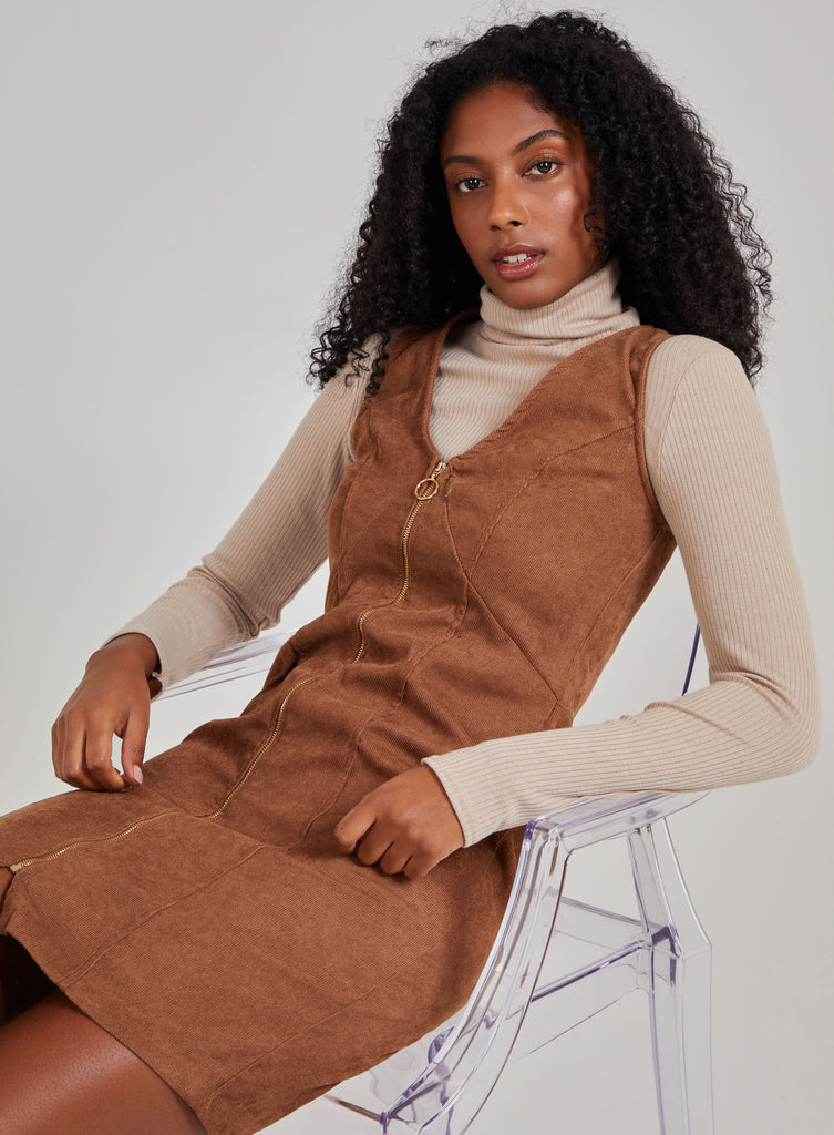 Look cute in corduroy in time for Spring! This zip front dress can be layered up or down, making it a perfect dress season after season!