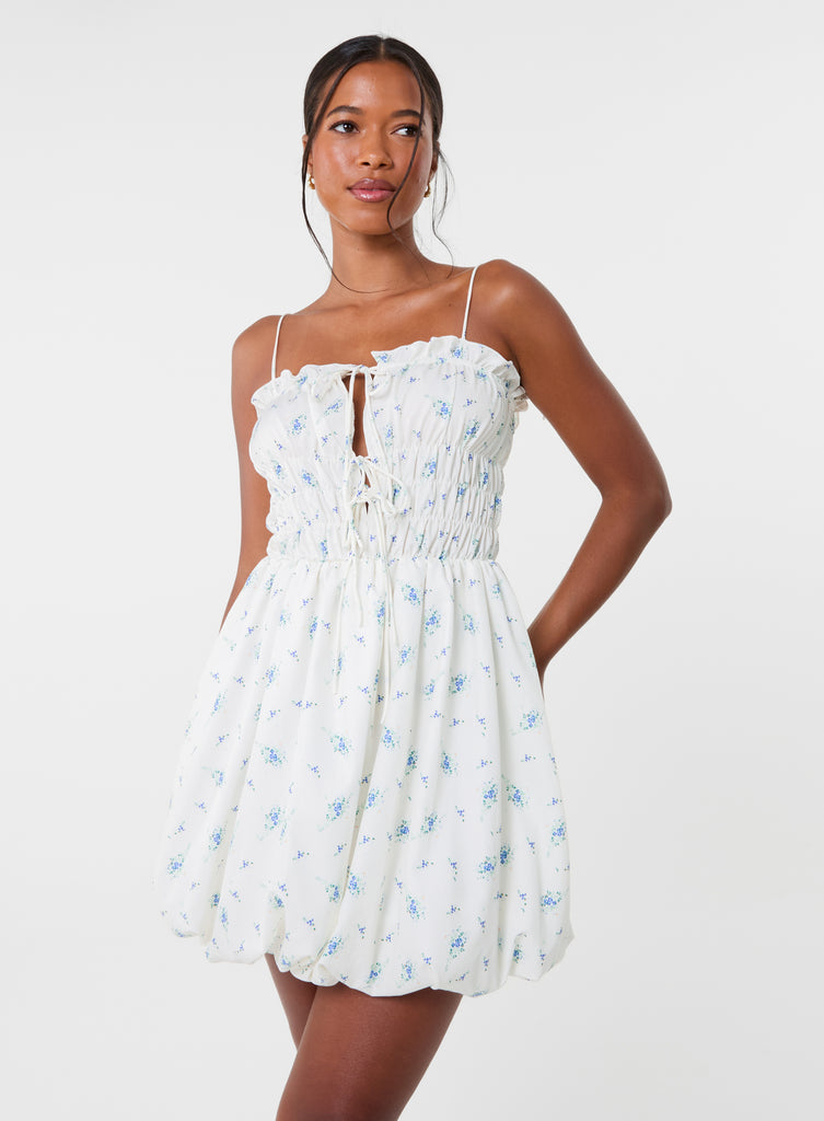 The prettiest floral of the season delivered to you by Pink Vanilla. Featuring a bubble hem skirt, adjustable tie straps and a cut out detail with tie-up strings at the bust. Style with kitten heels and a little bag for a cute Sunday brunch date.