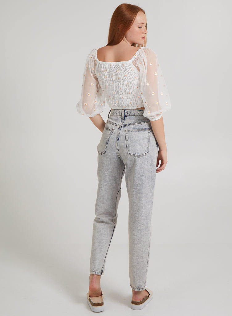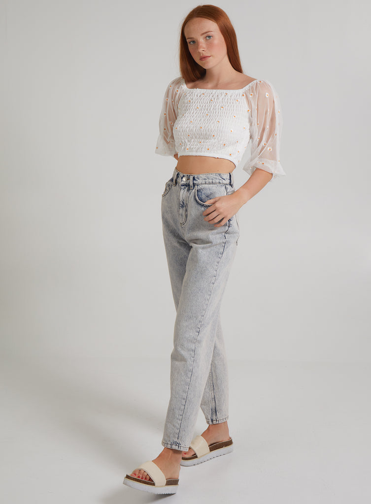Give into this season with this crop top doll. Featuring a white material, long sleeves and a flattering bardot neckline and Wear with your staple jeans and strappy heels for an insta-worthy look.