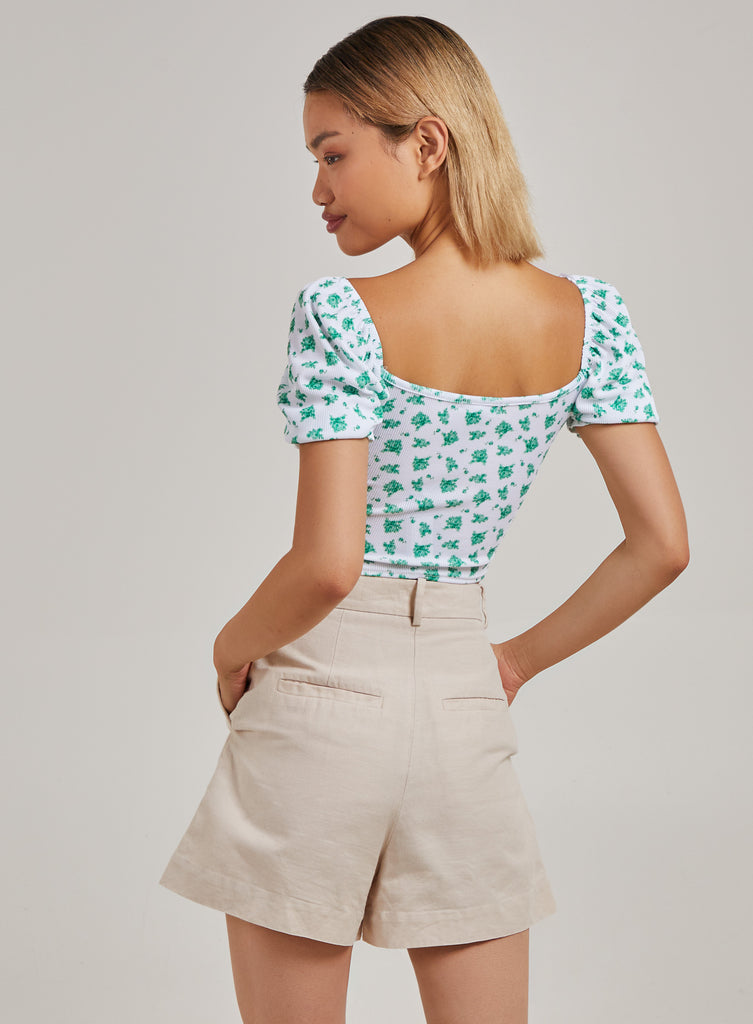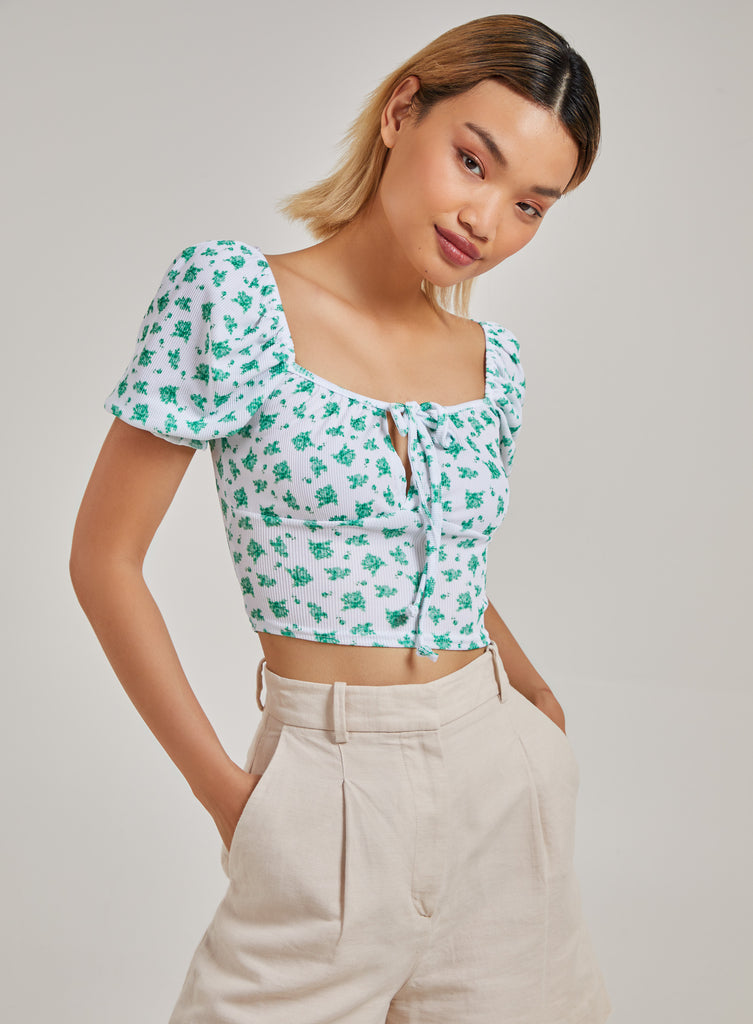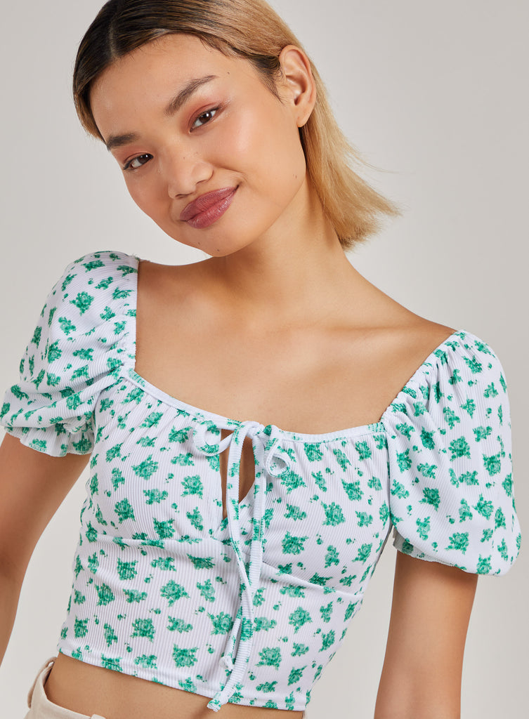 Floral Tie Detail Puff Sleeve Top