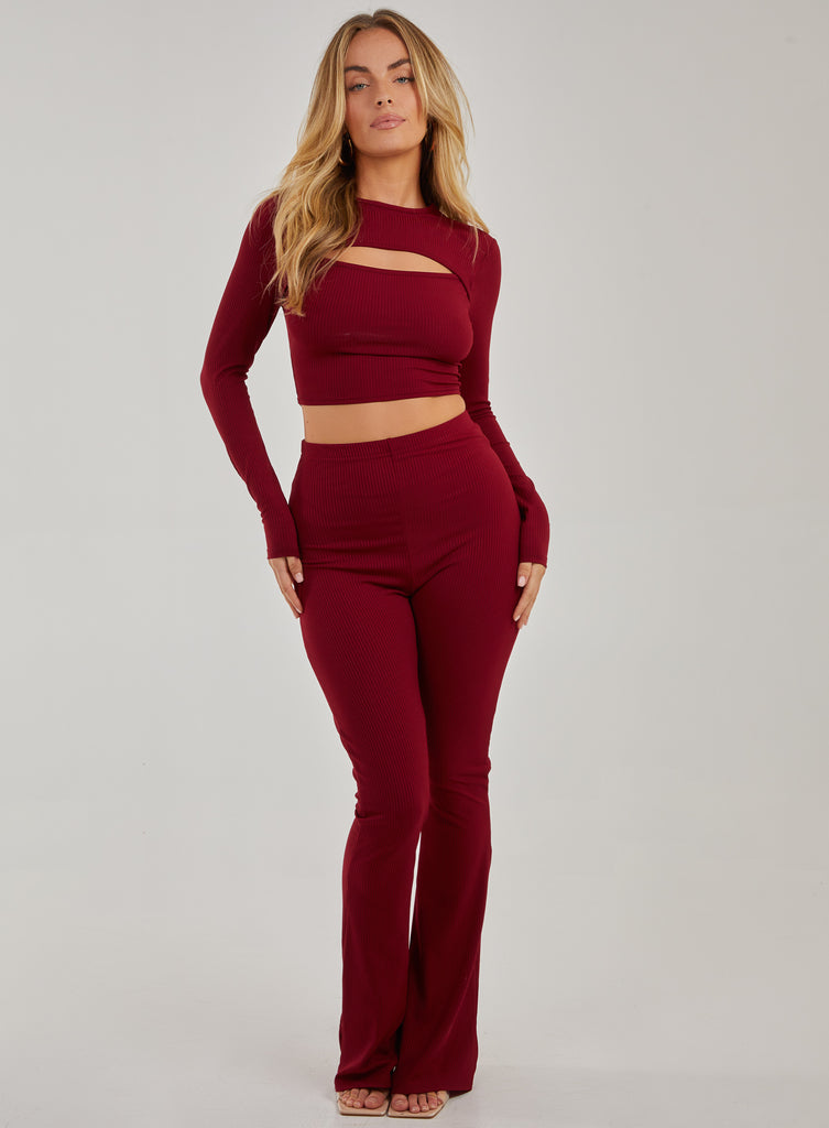 Get cosy and casual this season and ensure to look super trendy wearing this ribbed letterbox top. Team it with the ribbed flare trousers for the ultimate look!